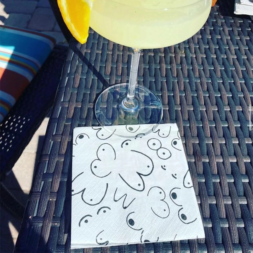 Bring in the adult humor! These beverage napkins are ideal for parties, hors d’oeuvres, appetizers, & more! This pack has 20 paper napkins, AKA the perfect amount for a bachelorette party, or a favorite hostess gift! The hand-drawn “All-Over Boobs” pattern was printed in the USA!