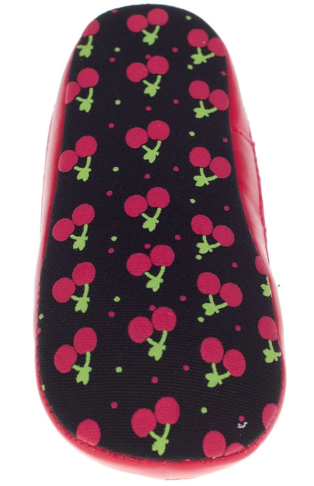 Keep your sweet little lady’s feet safe and warm with these new Sourpuss Crib Shoes. Featuring cherries sewn on the top, these canvas mary janes are trimmed in vinyl, lined in cotton and have non-skid, cherries patterned soles.