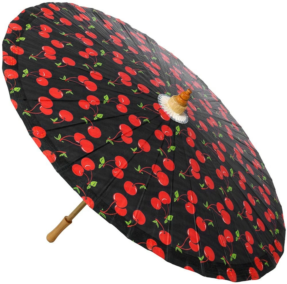 Now you can spend your days walking the boardwalk in style with this Sourpuss Cherries Parasol. Made of non-oiled paper with a wooden handle.