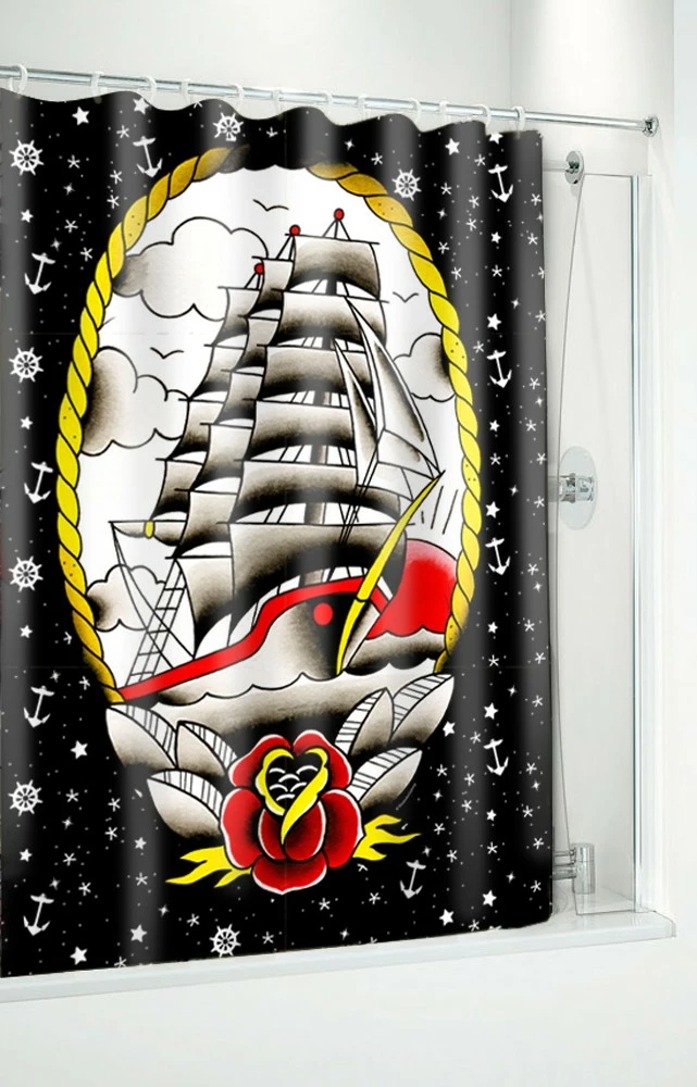 Sail away to a foreign land… or maybe you should just stick to showering. Either way you will have this amazing traditional tattoo inspired clipper ship by your side.