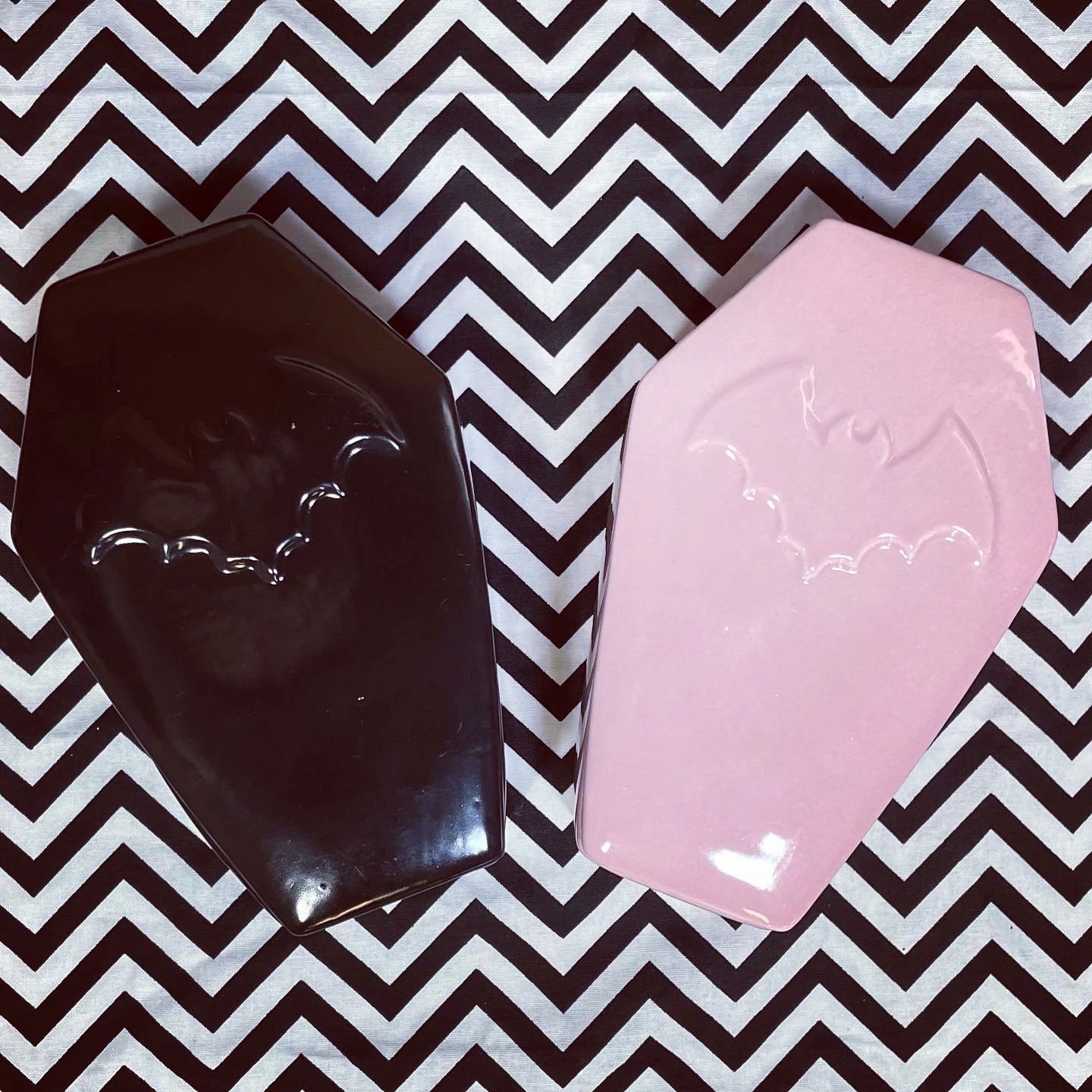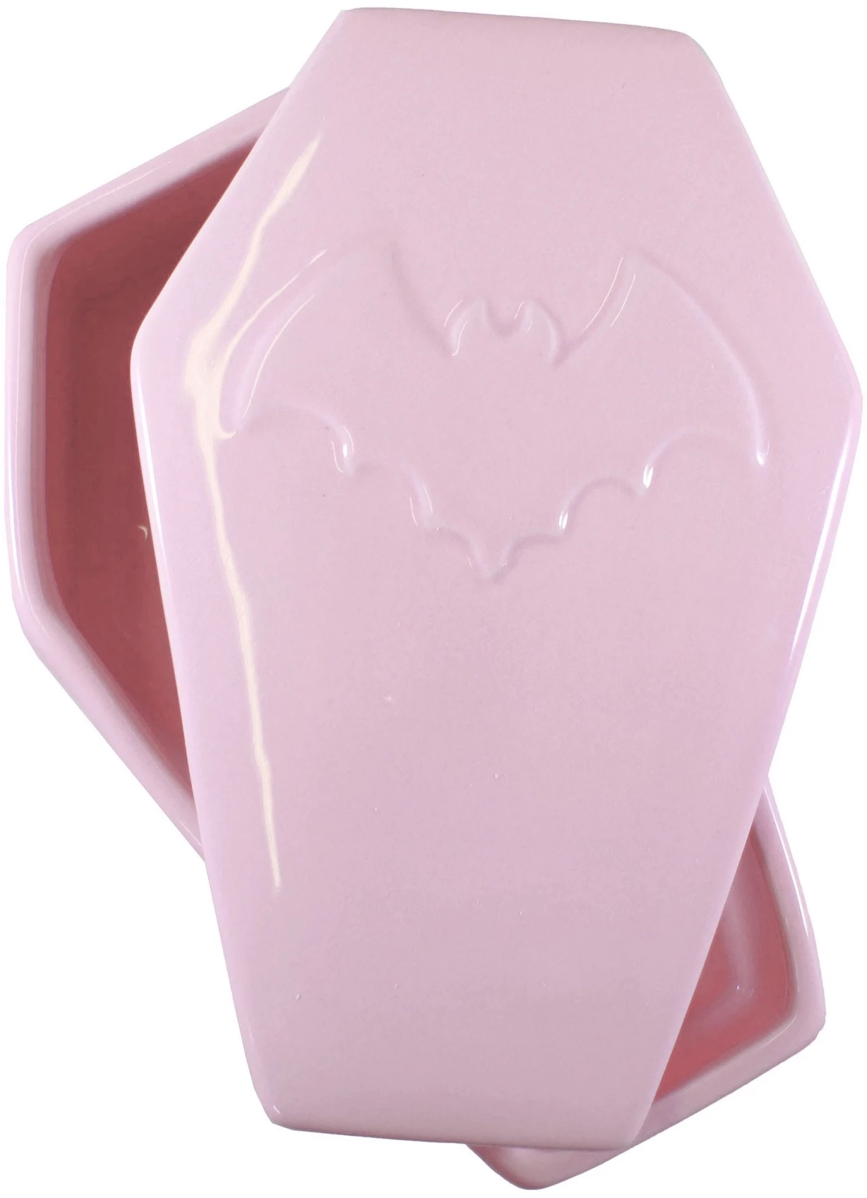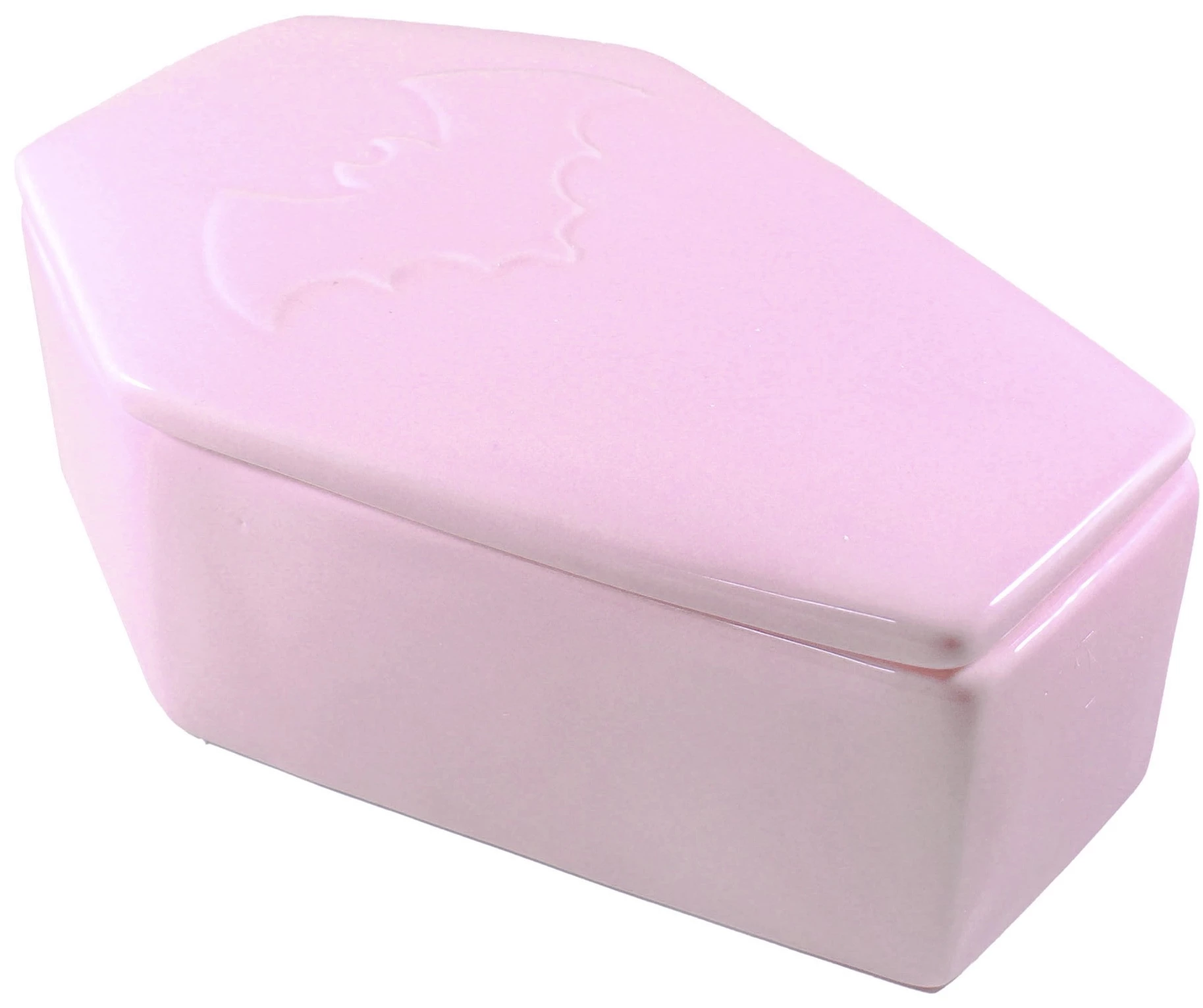 We couldn’t NOT make a limited pink version of our Coffin Stash Box! This porcelain keepsake container can be used to hold your jewelry, trinkets, coins or whatever magical small items you need to keep organized.