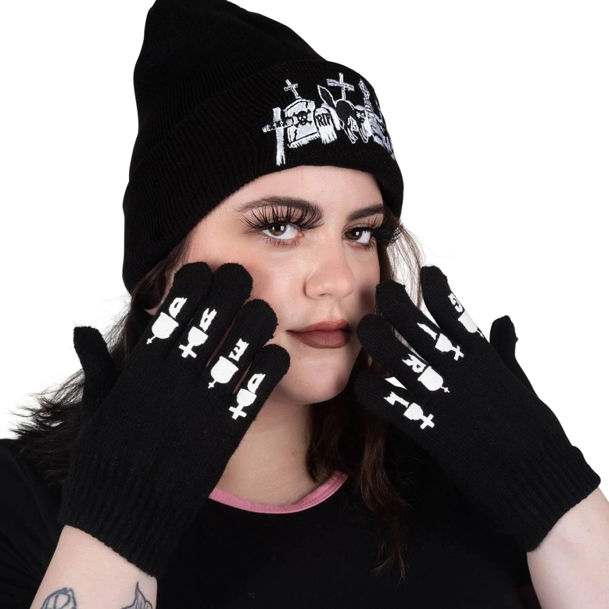 Dead Girl Tattoo Knit Gloves