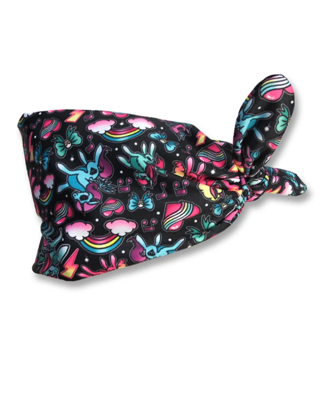 Pre-tied headscarf in stretch material, with hidden elastic.