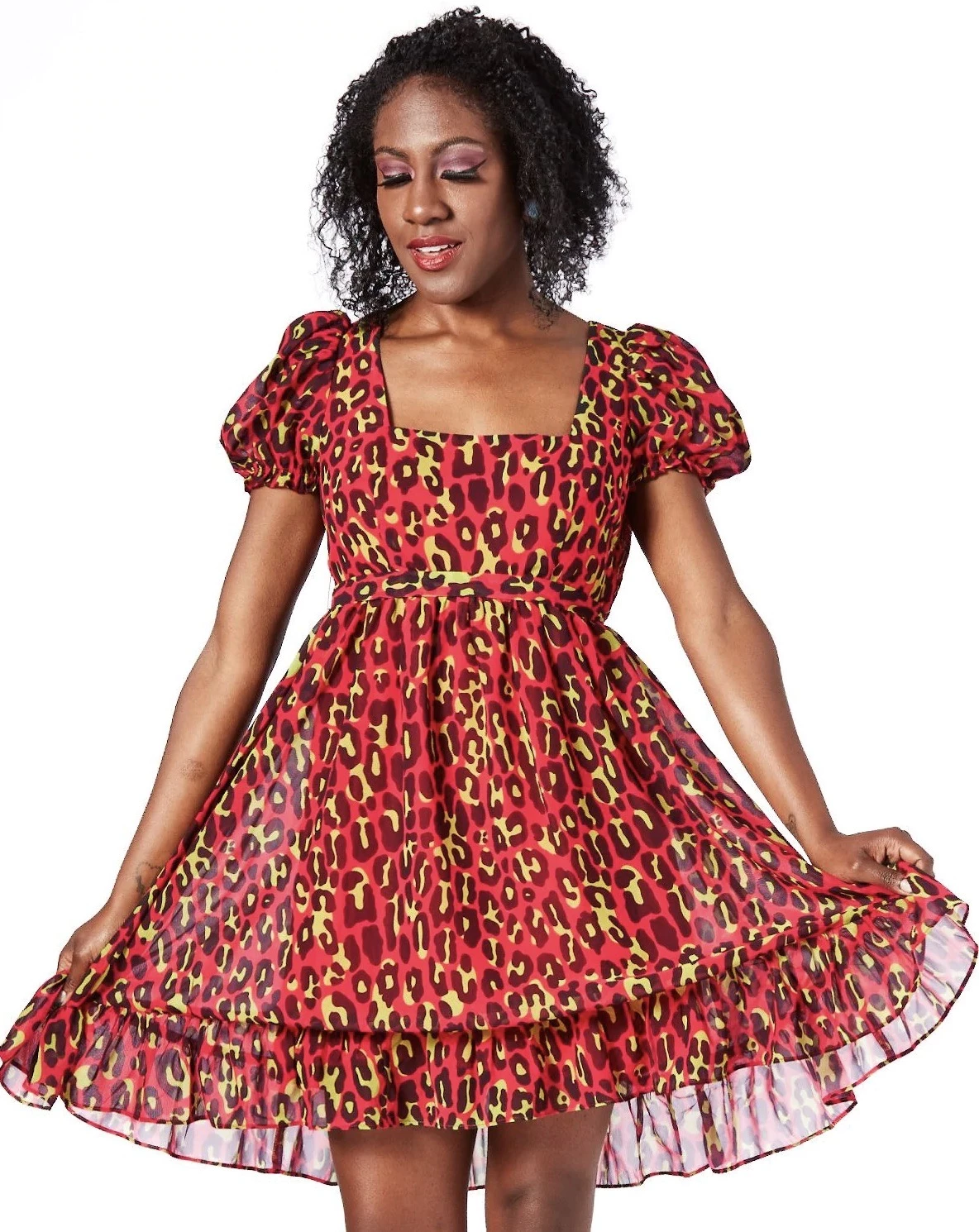 The dress of your dreams is here! The new Leopard Cream Puff dress in Hot Pink is to die for! This fluffy, floaty empire-waist dress features soft gauzy sleeves with not-too-tight elastic, a fully smocked back so there’s tons of stretch, full lining (aside from the sleeves) and a waist sash that can be tied either in the front or back. It’s an actual dream!