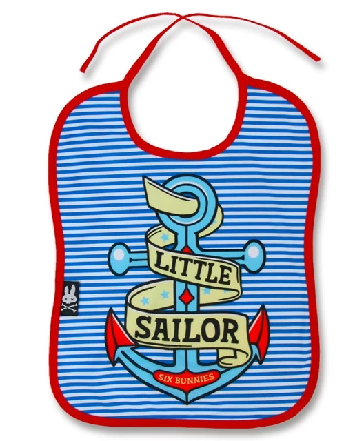 Six Bunnies Bibs have a polyester outer for ease of cleaning and a printed cotton inner for softness – also available with a matching onesie!