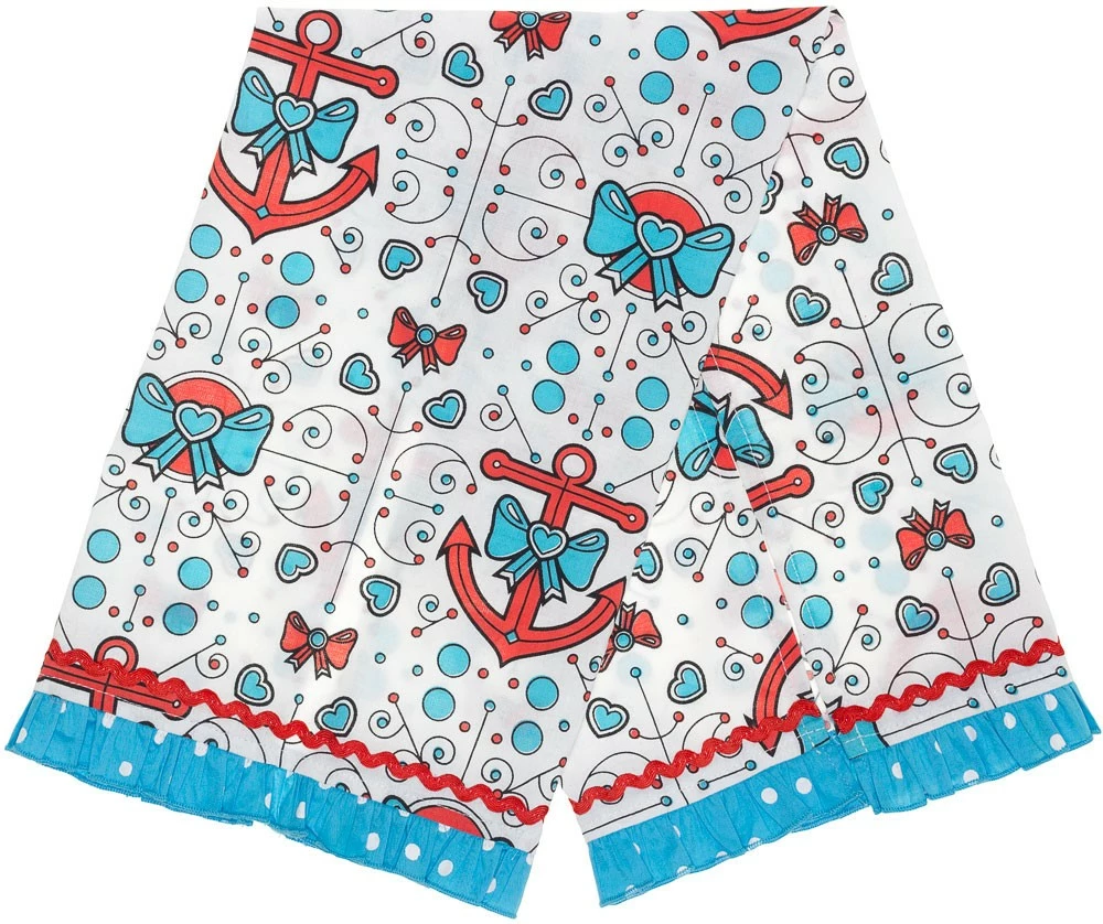 Add a bit of vintage flair to your kitchen with our Lovely Anchor Tea Towel! The anchors-hearts-and-bows pattern is as nautically sweet as can be and features adorable polka dot ruffles and ric rac trim. Perfect to pair with our new Lovely Anchor Apron! Please note: These towels should NOT be used to pull hot things out of the oven!