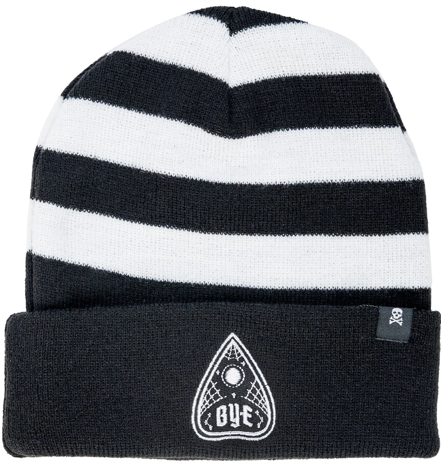 Bye! Hopefully people will get the message with this new hat. Made of a soft knit black and white stripes, with an embroidered planchette. Finely detailed with a Sourpuss branded label.