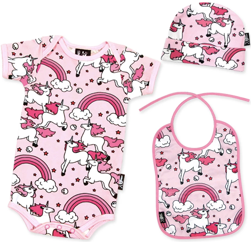 Material: 95% organic cotton, 5% spandex - Contains 1 Onesie, 1 Bib & 1 Beanie