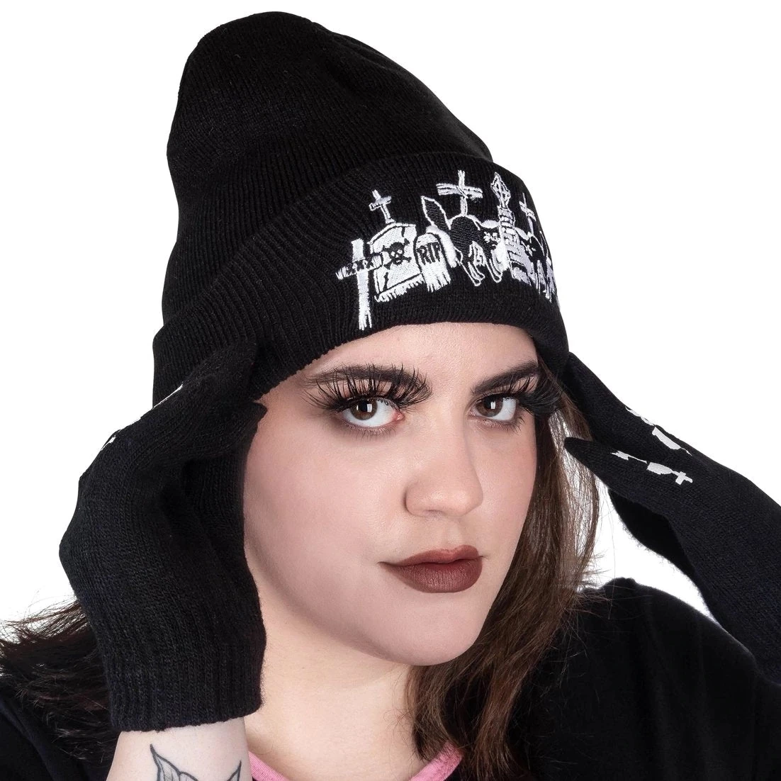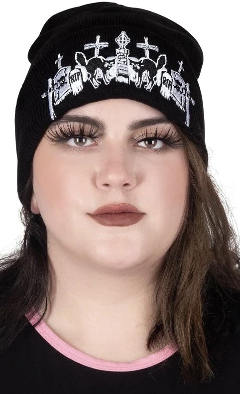 Too Fast RIP Graveyard Knitted Beanie at SugarSkulls Australia
