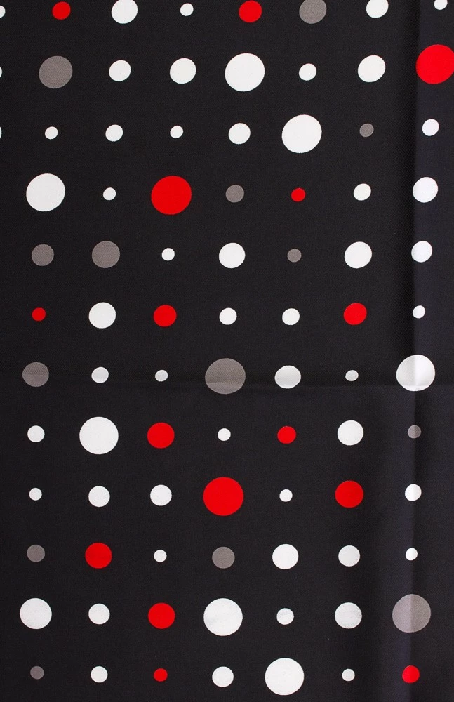 Reminiscent of the atomic age, this black bandana features red, white, and grey dots in various sizes. Tie this dot bandana up in your hair, around your neck or in your back pocket to add a little space age flair to every look!