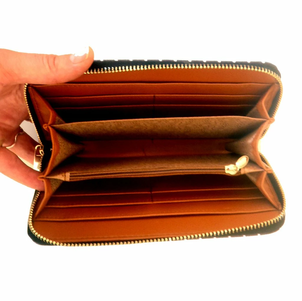 Another popular design by Jubly Umph adorns this accordion style zip up wallet. This wallet features a ship that is printed on both sides. There are 8 slots for cards, a pocket for bills, and a space for your spare change with a zipper to keep it all in! Be sure to pick up the matching handbag!