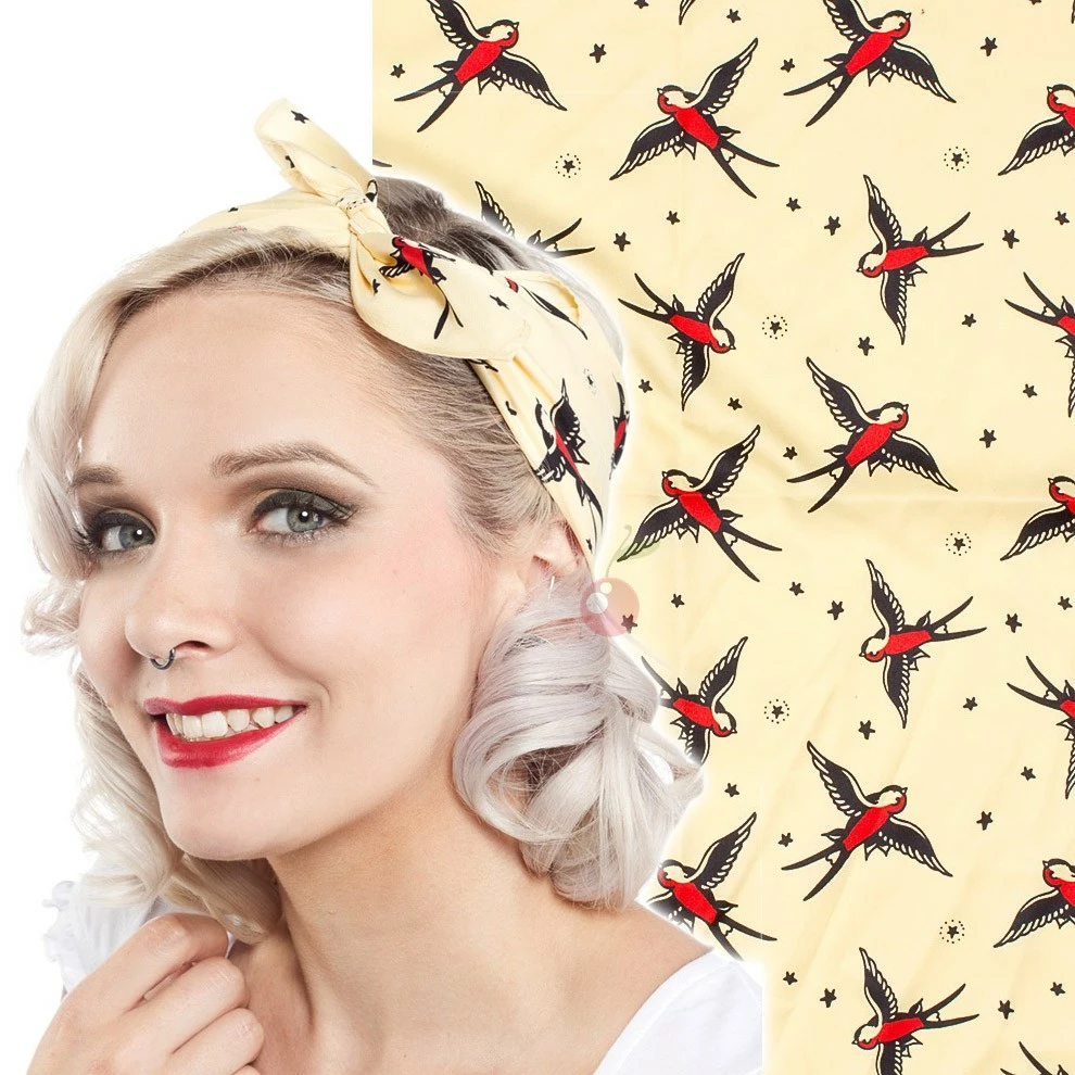 Pull your retro look together with the tattoo swallow scarf! This silky satin like bandana is a must for the Betty that’s always on the go!