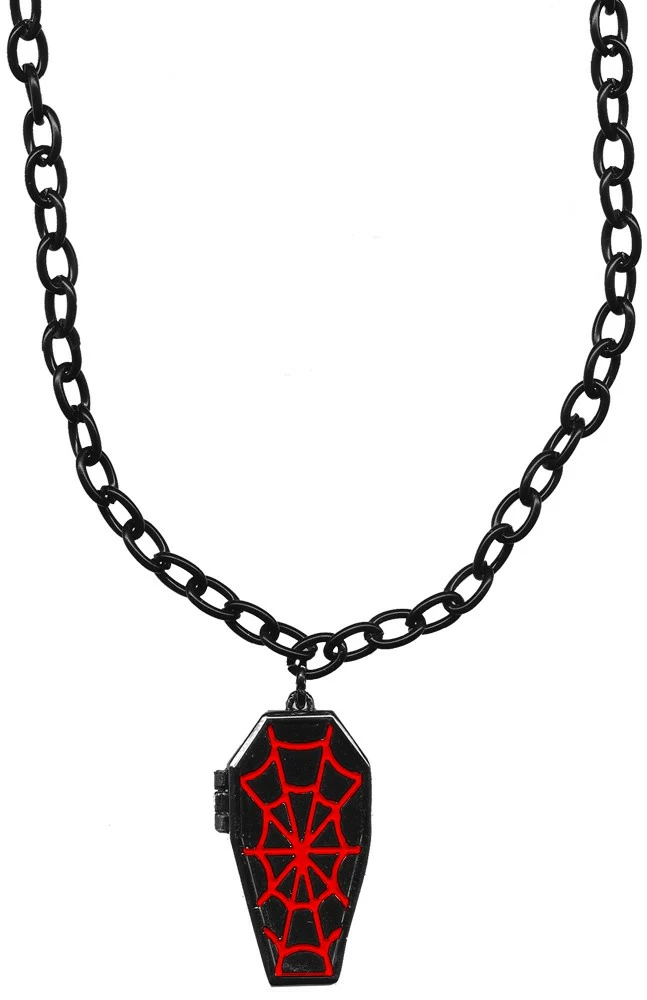 You’ll be a hit at the next monster bash! This spider webbed coffin charm has a swingin’ front door that opens to reveal a spider inside.