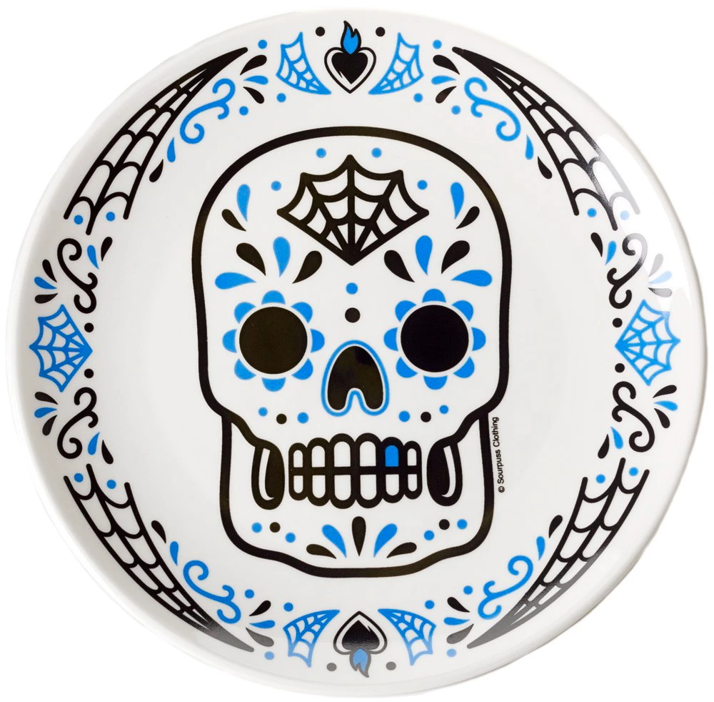 Make every day Dia De Muertos with this colorful SugarSkull plate. Microwave & Dishwasher safe this porcelain plate will make your dinner table a holiday worth celebrating!