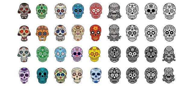 Sugar Skull Nail waterslide nail decals assortment. Sugar skulls aren’t just for Day of the Dead Celebrations any more. They look so cool, you can wear them year ’round. 32 decals per 5 1/2″ x 3″ sheet.