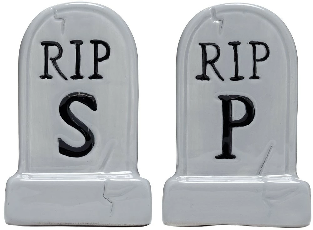 Give your seasonings a place to rest in peace within these Tombstone Shakers. Each hand-painted, salt & pepper shaker comes equipped with a rubber stopper for easy filling.